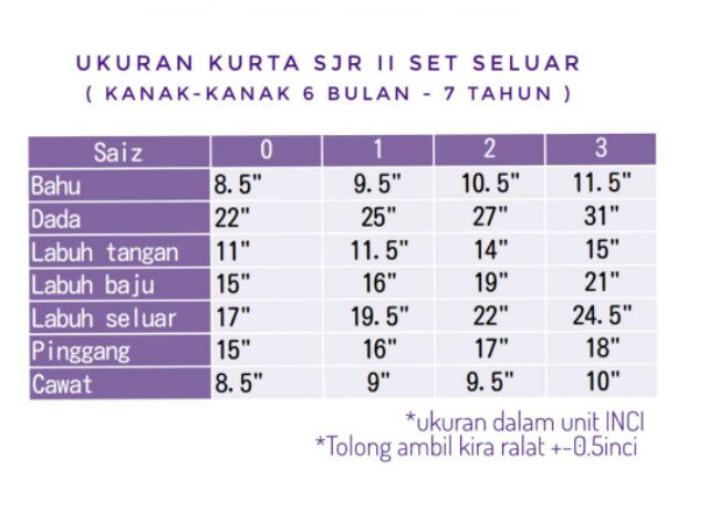 Abel tailoring jadual ukuran baju siap kanak kanak.